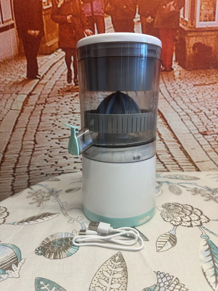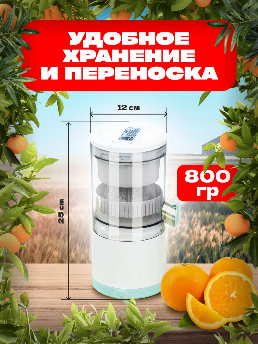 Аккумуляторная соковыжималка для цитрусовых быстро приготовит 2 литра сока на одном заряде. Портативная соковыжималки имеет широкое отверстия для загрузки фруктов и ягод. Мини гаджет приготовит свежий сок из апельсина, лимона, граната, винограда, арбуза, ягод и овощей.