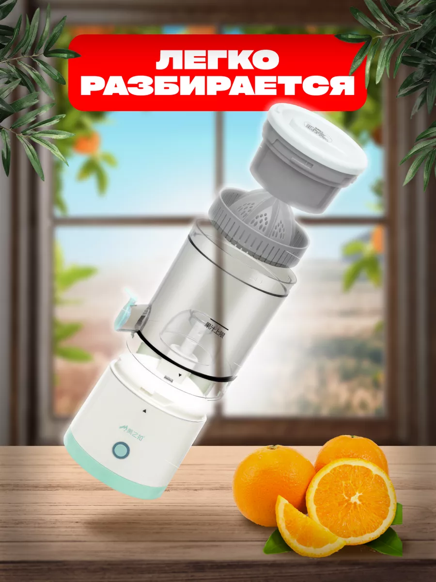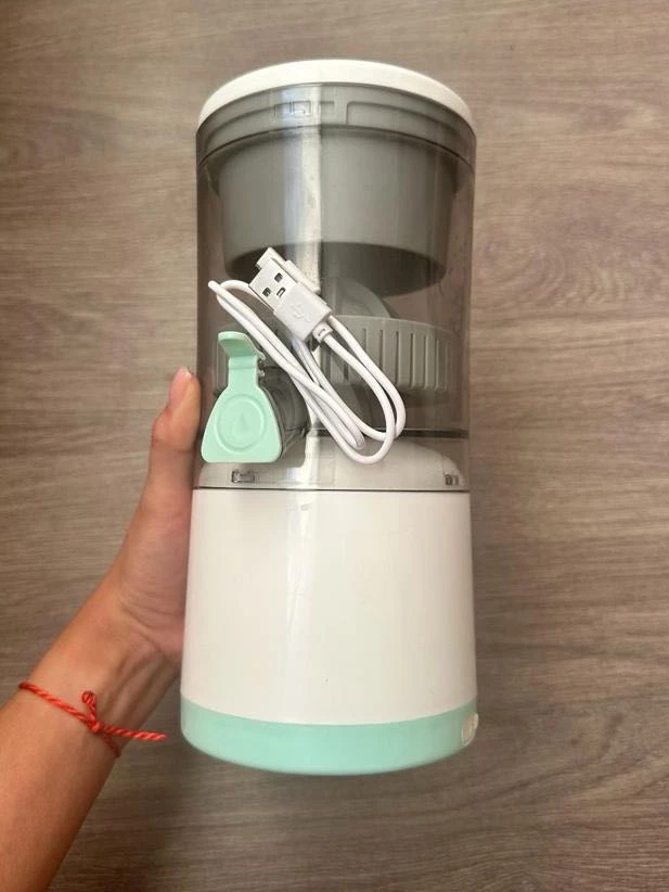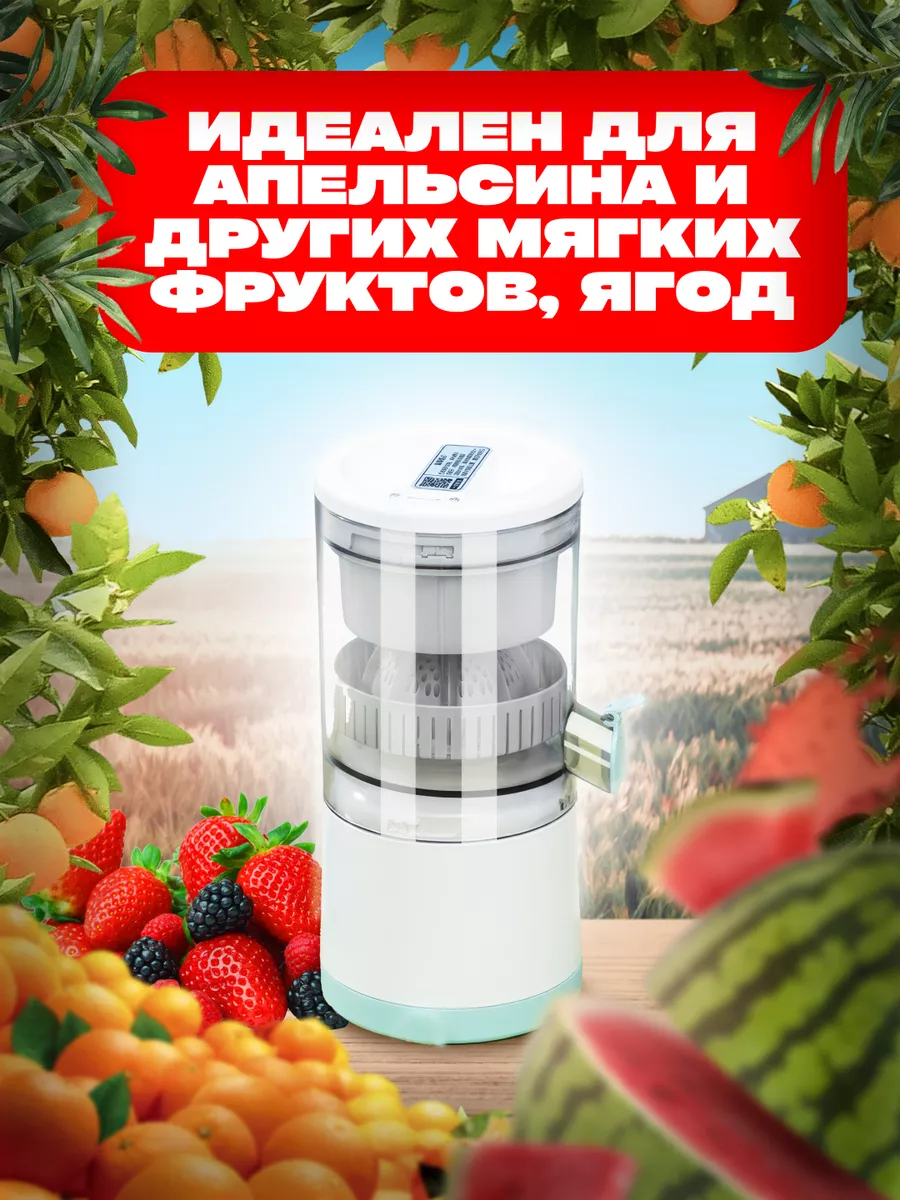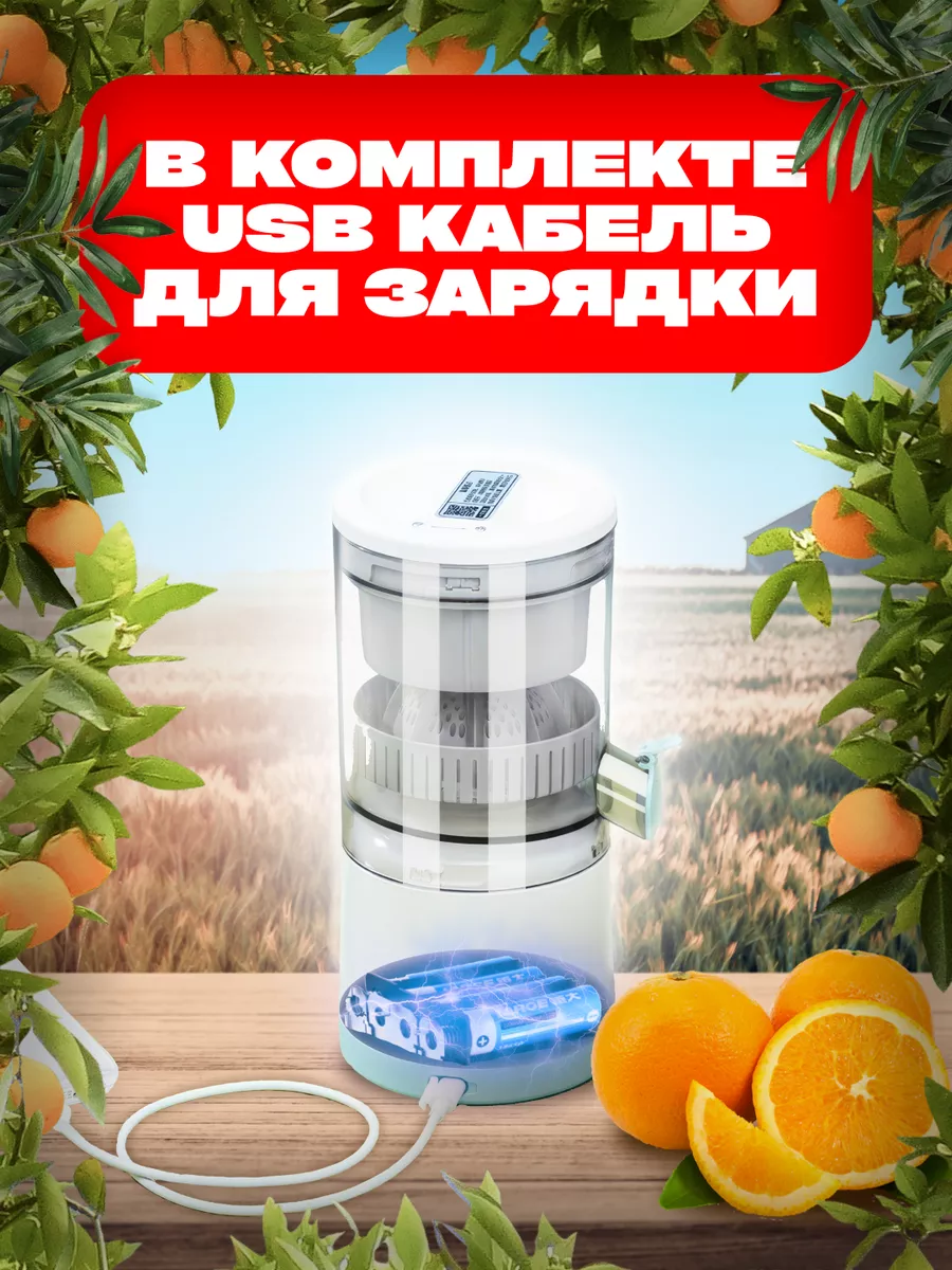 Аккумуляторная соковыжималка для цитрусовых быстро приготовит 2 литра сока на одном заряде. Портативная соковыжималки имеет широкое отверстия для загрузки фруктов и ягод. Мини гаджет приготовит свежий сок из апельсина, лимона, граната, винограда, арбуза, ягод и овощей.